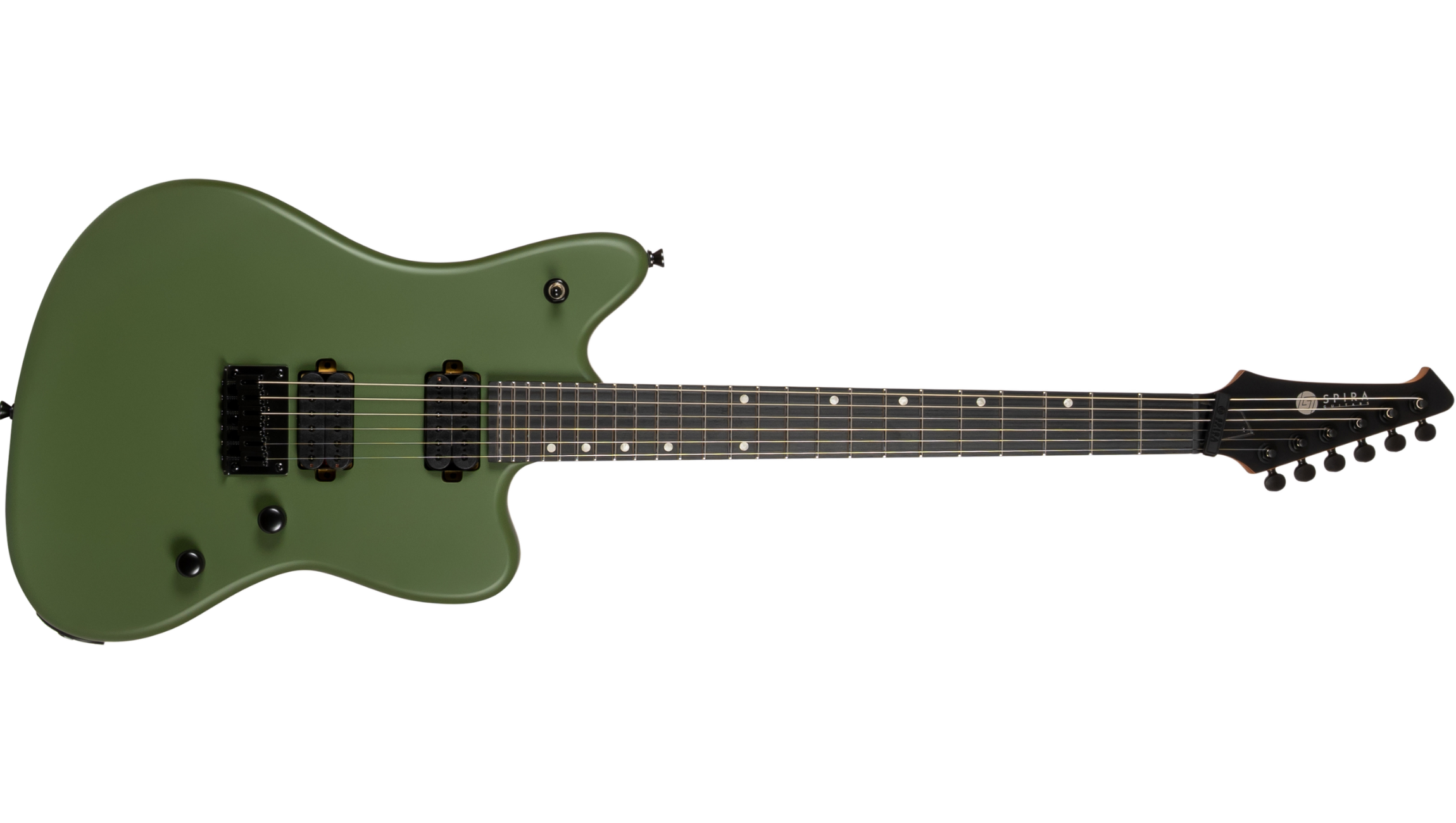 The Spira J-400 combines the comfort of an offset body design with the power and clarity needed for modern rock and metal. Inspired by classic offset shapes but built with modern performance in mind, it offers a distinctive look alongside aggressive, high-gain tone.