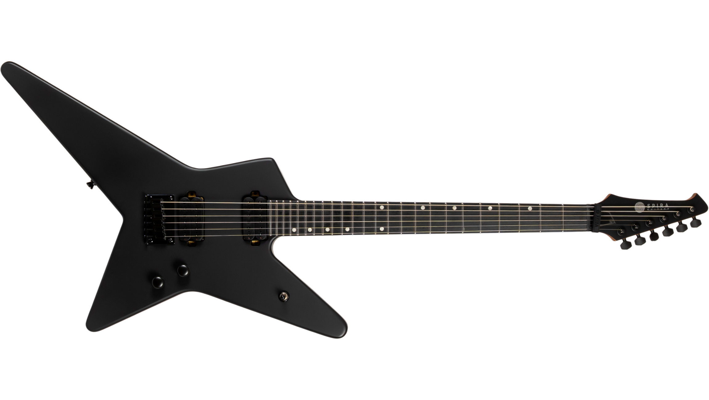 The Spira SR-400 channels the spirit of classic 80s metal guitars into a modern performance machine. With its aggressive star inspired body shape and stripped down high-gain setup, it’s built for players who want their guitar to look as bold as it sounds.